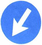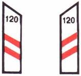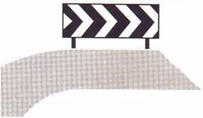 شاخصة تحذير وإرشاد في منعطف حاد : على سائق المركبة أن يتمهل بالسير ويتابع سيره بالاتجاه الموسوم باسهم على الشاخصة. في الأمكنة التي تنفذ فيها أشغال على الطريق تكون الألوان برتقالي - ابيض. | ||
